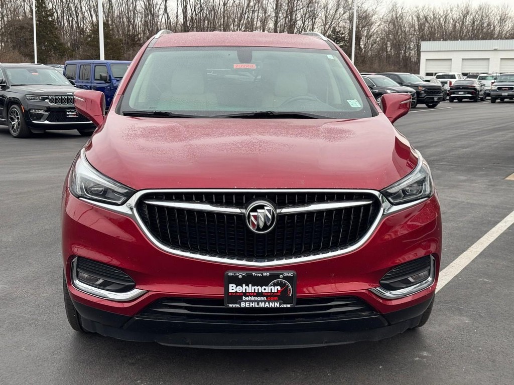 CALL (636) 462-3600 FOR MORE INFORMATION, ONE OWNER, LOCAL TRADE, 2ND ROW CAPTAIN CHAIRS, 3RD ROW SEVEN PASSENGER, BLUETOOTH, REAR BACK UP CAMERA, REAR PARKING SENSORS, APPLE CARPLAY / ANDROID AUTO, HEATED LEATHER SEATS, AWD / 4 WHEEL DRIVE, POWER REAR LIFTGATE, REMOTE VEHICLE START, ALLOY WHEELS, SIDE BLIND ZONE ALERT, LANE DEPARTURE WARNING, SATELLITE RADIO, Enclave Essence, 4D Sport Utility, 3.6L V6 SIDI VVT, 9-Speed Automatic, AWD, Red Quartz Tintcoat, Shale Leather. Floor Liner Package (LPO) (1st & 2nd Row All-Weather Floor Liner (LPO), 3rd Row All-Weather Floor Liner (LPO), and Integrated Cargo Liner (LPO)), Front Mounting License Plate Bracket Package, Preferred Equipment Group 1SL, Enclave Essence, 4D Sport Utility, 3.6L V6 SIDI VVT, 9-Speed Automatic, AWD, Red Quartz Tintcoat, Shale Leather, 18" Painted Aluminum Wheels, 20" Polished Aluminum Wheels, 3.49 Axle Ratio, 3rd row seats: split-bench, 4-Wheel Disc Brakes, 6 Speakers, 6-Speaker Audio System Feature, 7-Passenger Seating, ABS brakes, Air Conditioning, Alloy wheels, AM/FM radio: SiriusXM, Apple CarPlay/Android Auto, Auto High-beam Headlights, Auto-dimming door mirrors, Auto-dimming Rear-View mirror, Automatic temperature control, Brake assist, Bumpers: body-color, Compass, Delay-off headlights, Driver door bin, Driver vanity mirror, Dual front impact airbags, Dual front side impact airbags, Electronic Stability Control, Emergency communication system: OnStar and Buick connected services capable, Four wheel independent suspension, Front anti-roll bar, Front Bucket Seats, Front Center Armrest, Front dual zone A/C, Front reading lights, Fully automatic headlights, Garage door transmitter, Heated door mirrors, Heated Driver & Front Passenger Seats, Heated front seats, Illuminated entry, Leather steering wheel, Low tire pressure warning, Occupant sensing airbag, Outside temperature display, Overhead airbag, Overhead console, Panic alarm, Passenger door bin, Passenger vanity mirror, Perforated Leather-Appointed Seat Trim, Power door mirrors, Power Driver Lumbar Control Seat Adjuster, Power driver seat, Power Liftgate, Power Passenger Lumbar Control Seat Adjuster, Power passenger seat, Power steering, Power windows, Premium audio system: Buick Infotainment System, Radio data system, Radio: Buick Infotainment System AM/FM Stereo, Rear air conditioning, Rear anti-roll bar, Rear Parking Sensors, Rear reading lights, Rear window defroster, Rear window wiper, Remote keyless entry, Roof rack: rails only, Security system, SiriusXM Radio, Speed control, Speed-sensing steering, Spoiler, Steering wheel mounted audio controls, Tachometer, Telescoping steering wheel, Tilt steering wheel, Traction control, Trip computer, Turn signal indicator mirrors, Variably intermittent wipers, and Voltmeter. Odometer is 25527 miles below market average!
