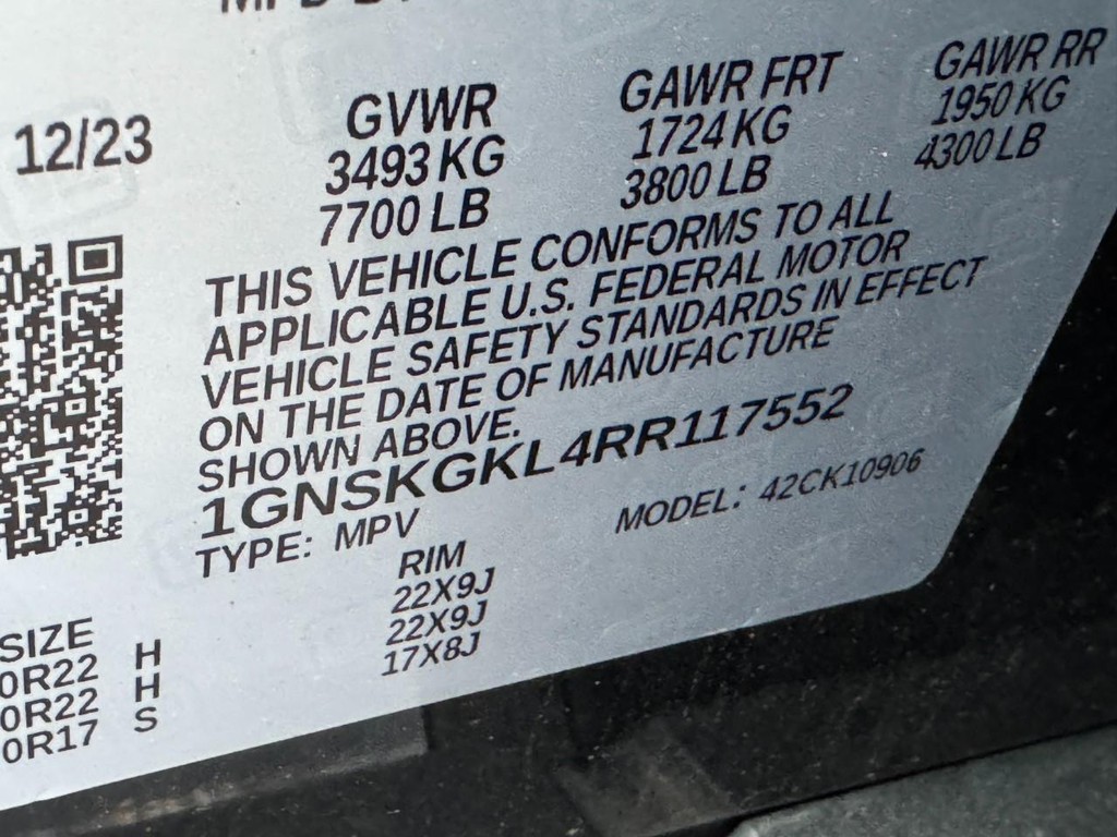 - VIN : 1GNSKGKL4RR117552